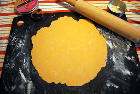 Turn out onto a lightly floured surface and and roll each very thin. Seriously, as thin as you can roll it. If you can use rolling pin rings you’ll be in better shape than I was – you’ve got to make sure it’s all even so the crackers all bake evenly.